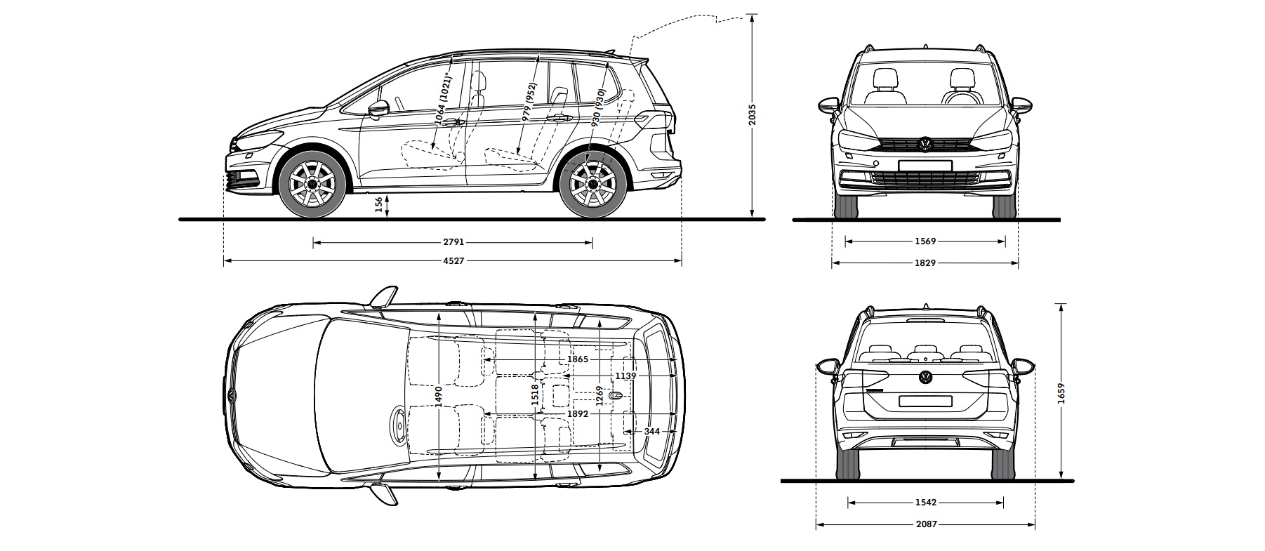 | 2.0 TSI DSG 4Motion Urban Sport | 4509 x 1839 x 1675 | 1642 | 201 |