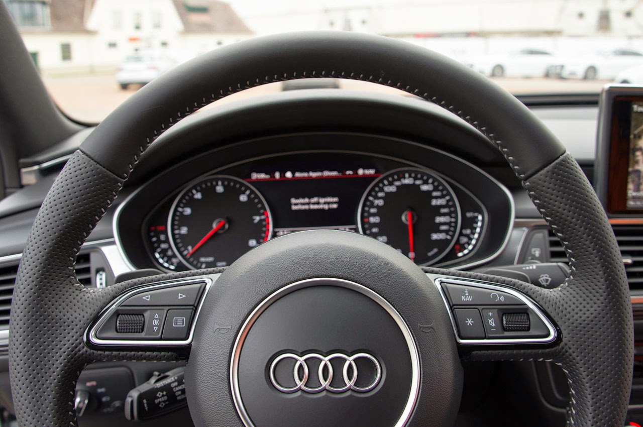 Но наша тестовая машина была загружена до планширей. Пакет Prestige (внешняя отделка S-line, навигационная система, Audi Connect, передние и задние парктроники, четырехзонный автоматический климат-контроль, вентиляция передних сидений, адаптивные ксеноновые фары, усилитель наклона рулевой колонки и телескоп, внешнее освещение салона, многоцветная система информации о водителе) добавили к чистой прибыли $ 6880. Суперсовременная аудиосистема премиум-класса Bang & Olufsen добавила 5900 долларов. Спорт-пакет (19-дюймовые колеса и летняя резина, тюнинг спортивной подвески, трехспицевый руль, подрулевые переключатели): 1500 долларов.Светодиодные фары: 1400 $. Система предупреждения о слепых зонах: 500 долларов. Краска «Авиатор синий металлик» (на самом деле она вроде серая): 475 долларов.